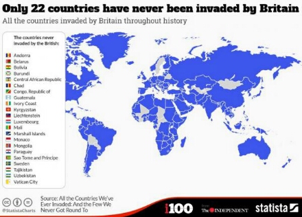 There are only 22 countries in the world today that have never been “invaded” by troops of the United Kingdom of Great Britain and Northern Ireland.