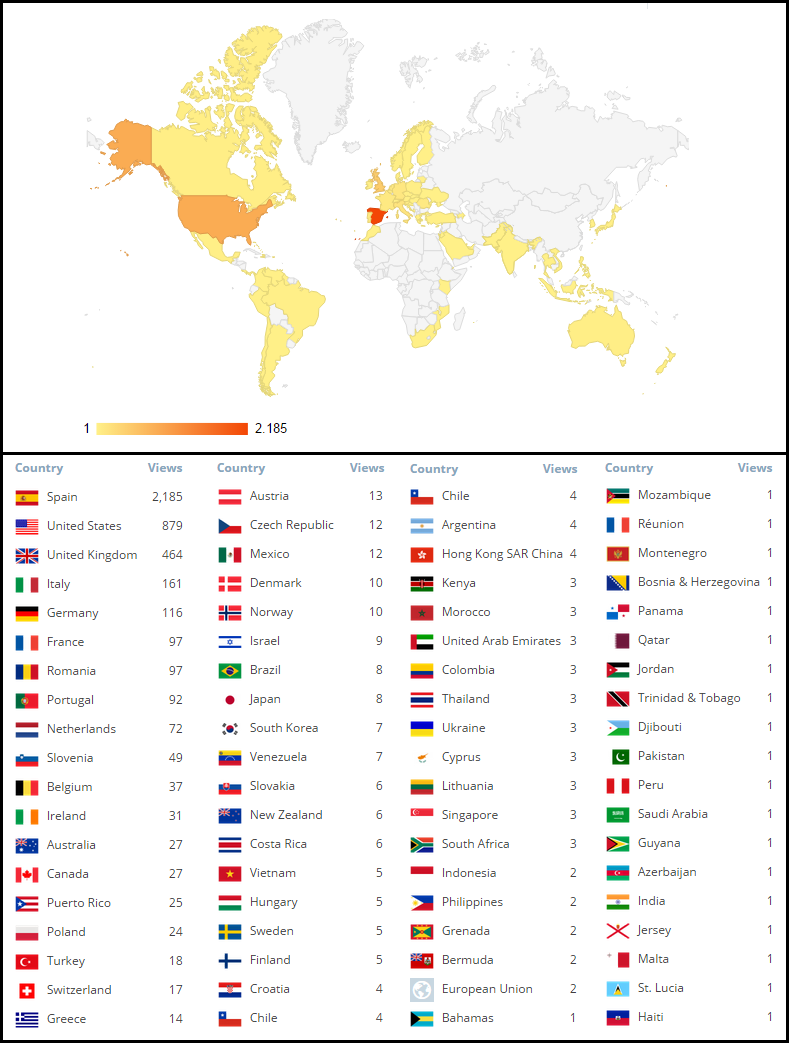 The statistics of visitors and page views are impressive: 4701 readers from 76 countries in 5 continents.